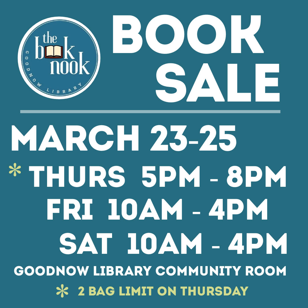 The next Book Nook book sale is scheduled for March 23–25 in the library. Details to come!