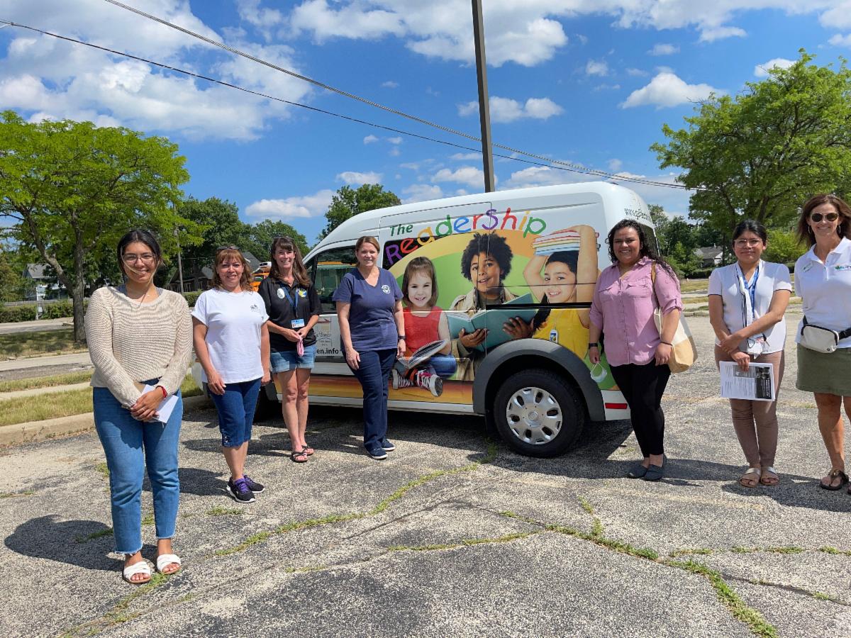 This dynamic group at the mobile food pantry offers new books, Getting Ready for Kindergarten Calendars, early learning materials, home visiting opportunities, preschool sign-up, library cards, and health services.