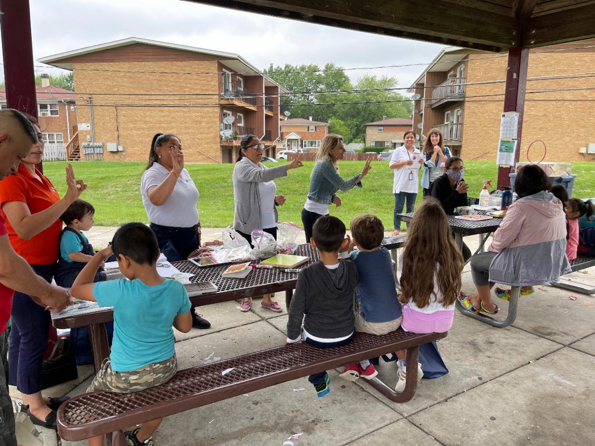 Partners have held true to Together We Can this summer to serve children in five neighborhoods across Elgin and Streamwood/Hanover Park. A dedicated group of bilingual educators and partners mobilize Monday through Friday by grabbing their wagon of early learning materials, books, giveaways and head into the neighborhoods to meet families where they are. A typical day starts with storytime, songs, fun early learning activities that support needed Kindergarten readiness skills, lots of giggles, and making friends while teachers model to parents' best practices. The libraries are on-site for checkouts and food is provided from Northern Illinois Food Bank or School District U-46.