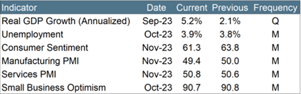 In Q3 2023, the U.S. economy grew at a 5.2 percent annual rate, up from 2.1 percent in Q2. This was the strongest growth since Q4 2021. Consumer spending, the largest contributor to the increase in GDP, grew at an annualized 3.6 percent. The second largest contributor to GDP growth was private inventory investment, including wholesale trade, manufacturing, and retail trade.