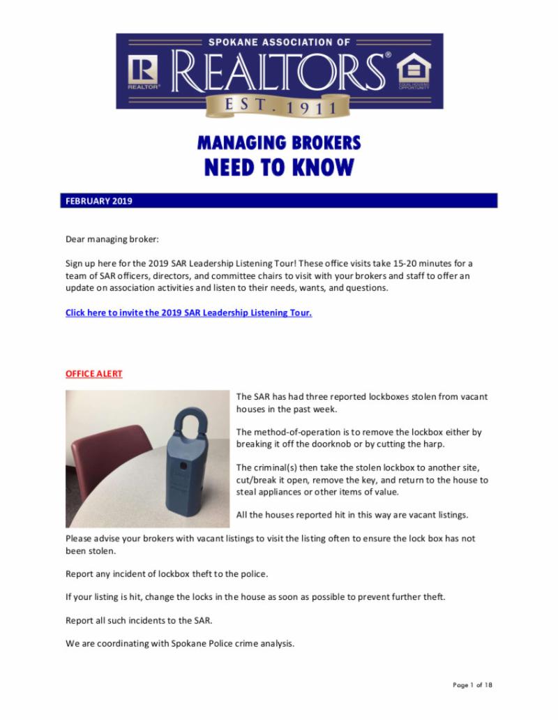 Offered here is the February edition of Managing Brokers Need to Know.