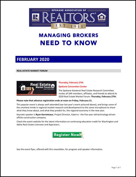Offered here is the February edition of Managing Brokers Need to Know.