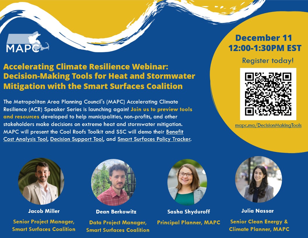 | | | Upcoming Webinar: Decision-Making Tools for Heat and Stormwater | | Applications Open for MAPC's Technical Assistance Program | | |