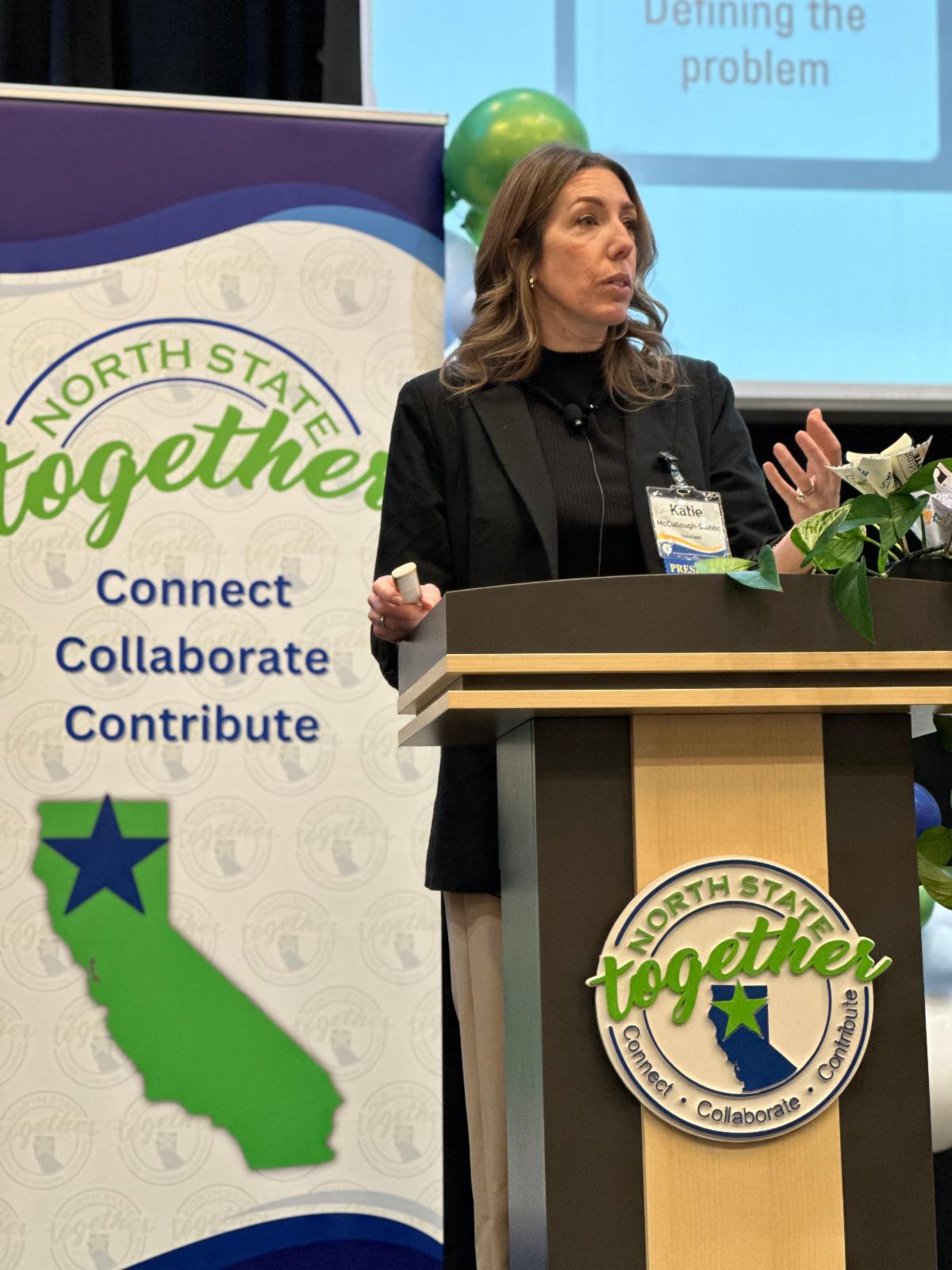 Heather Hadwick, California Assemblywoman for District 1, delivered a powerful personal story about growing up in rural Northern California in poverty, holding a perfect ACEs (Adverse Childhood Experiences) score. She shared how the support of librarians and teachers helped her overcome significant challenges and achieve success. Hadwick emphasized that education has the power to change the future for individuals with high ACEs scores, stating that students do not have to be a product of their environment if they have educators who drive them to set the bar higher and provide necessary supports. Now a state leader, she works to ensure those same supports are available to North State students today.