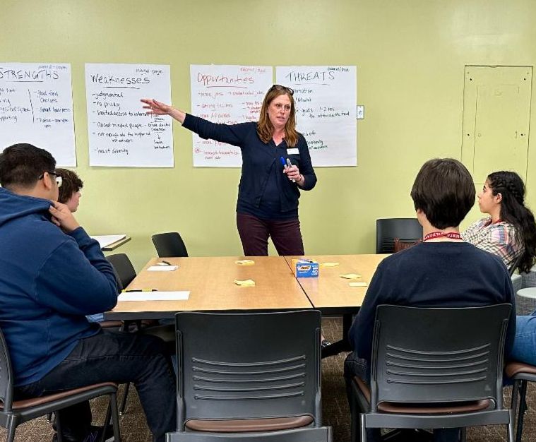 Courtney Farrell’s session focused on conducting a SWOT analysis, where students examined the strengths, weaknesses, opportunities, and threats in their communities. Through guided questions, Courtney inspired students to raise their voices and share their perspectives on local challenges and opportunities.