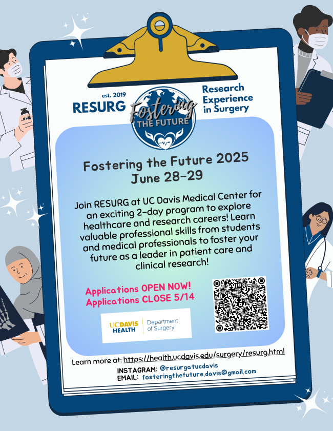 North State Together is excited to share a unique opportunity for high school students interested in healthcare and research! Fostering the Future, hosted by RESURG (Research Experience in Surgery) at the UC Davis Medical Center, is a free summer educational event taking place June 28–29, 2025, in Sacramento.