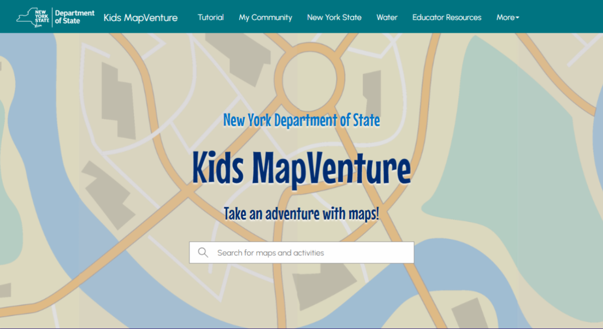 To help build that capacity in our children, the New York Department of State, Office of Planning, Development, and Community Infrastructure worked with their partner, Stone Environmental, to develop a youth-friendly website. The website, called Kids MapVenture, is geared towards students in grades 3-6 and leverages the power and information of the New York Department of State’s Geographic Information Gateway (Gateway). Kids MapVenture is a kid-friendly interface designed to engage young people in discovering the State’s geography and learn about our many and varied resources. The purpose of the site is to introduce children at a younger age to mapping concepts, give them tools to explore their place in the world, foster understanding, and equal opportunities for youth in traditionally disadvantaged and underserved communities, and have fun learning the importance of “where.” It is envisioned that students will use the Kids MapVenture as a stepping-stone to use the Gateway.
