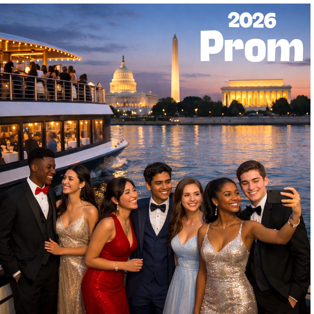 TICKETS ON SALE DURING LUNCH ALL WEEK! This year, we're doing dinner with a view. Prom is happening on a boat, sailing the Potomac with the monuments as your backdrop. Think sunset photos, skyline vibes, dinner, dancing, and a night that actually lives up to the hype.