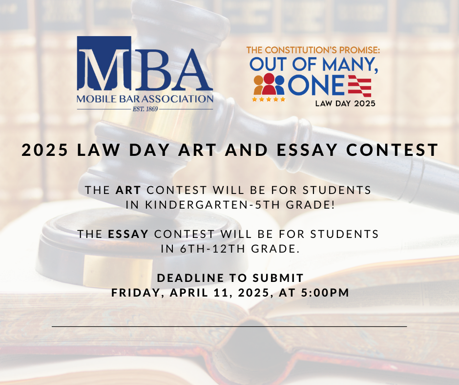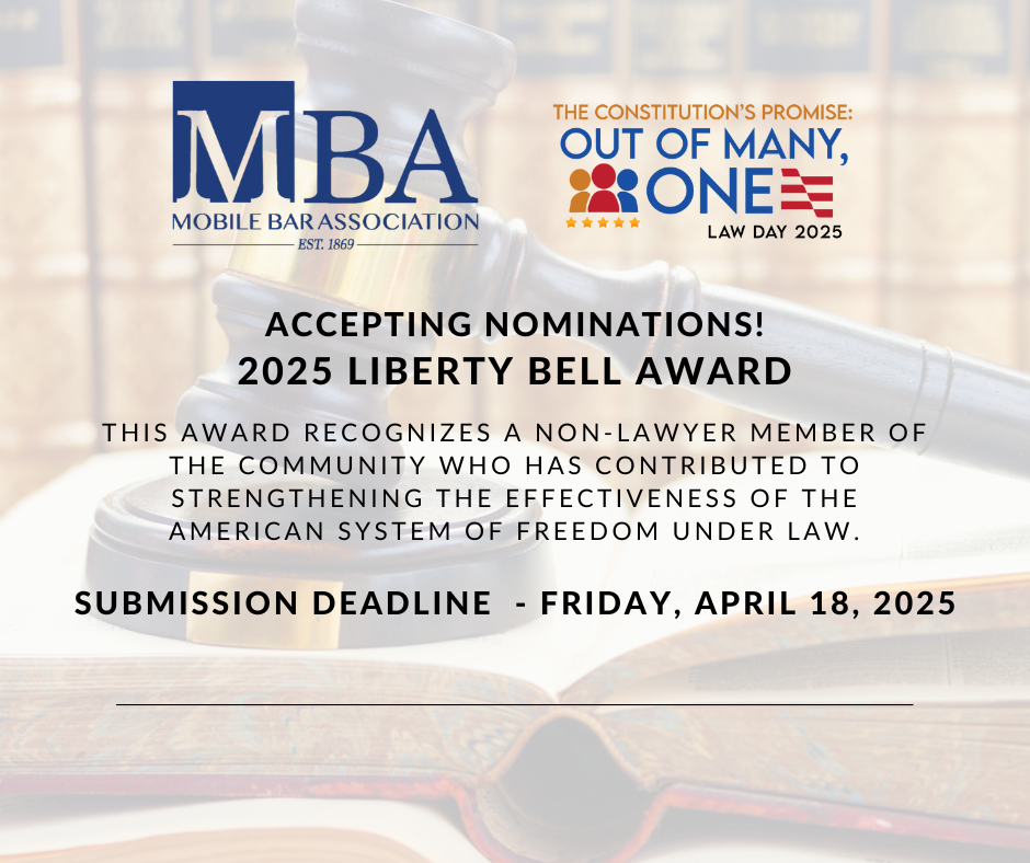 The Mobile Bar Association is YOUR association. Thank you for getting involved and/or volunteering. If you’re not involved with the Mobile Bar, please consider participating. There are many opportunities, and you can give a little or a LOT. Regardless, START! It will be a positive step towards growth in connecting…learning…and serving. It does the body and soul good!