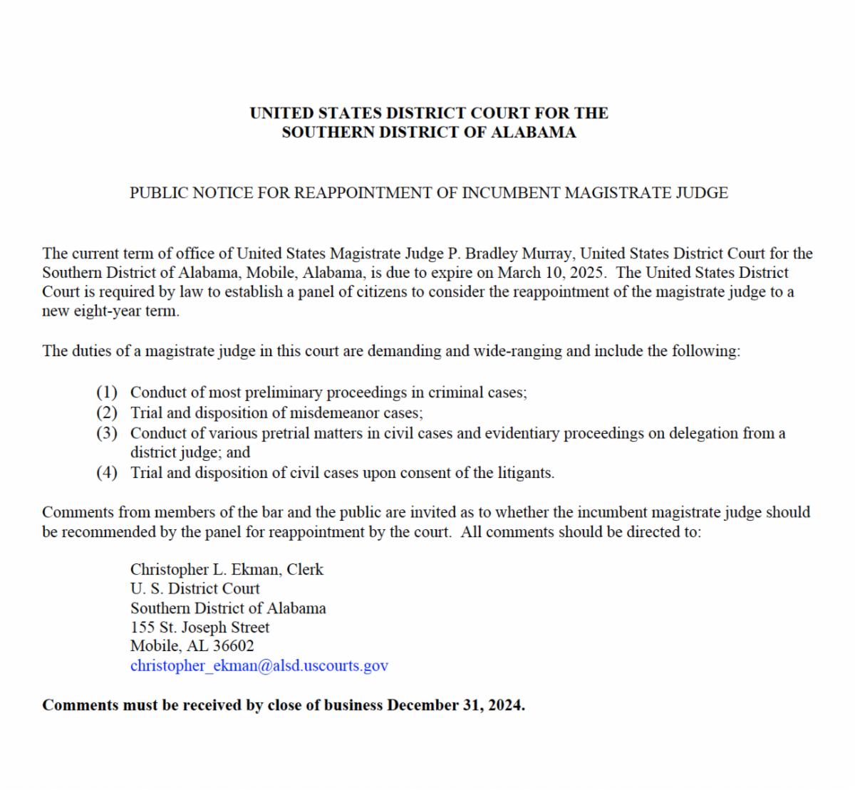 Lastly, many thanks to Raymond Bell for serving as the 2024 President of the Mobile Bar Association. We appreciate your hard work and dedication. Thank you to the members serving on the Executive Committee, and to our members who serve on other committees and sections. You are the reason we continue to succeed.