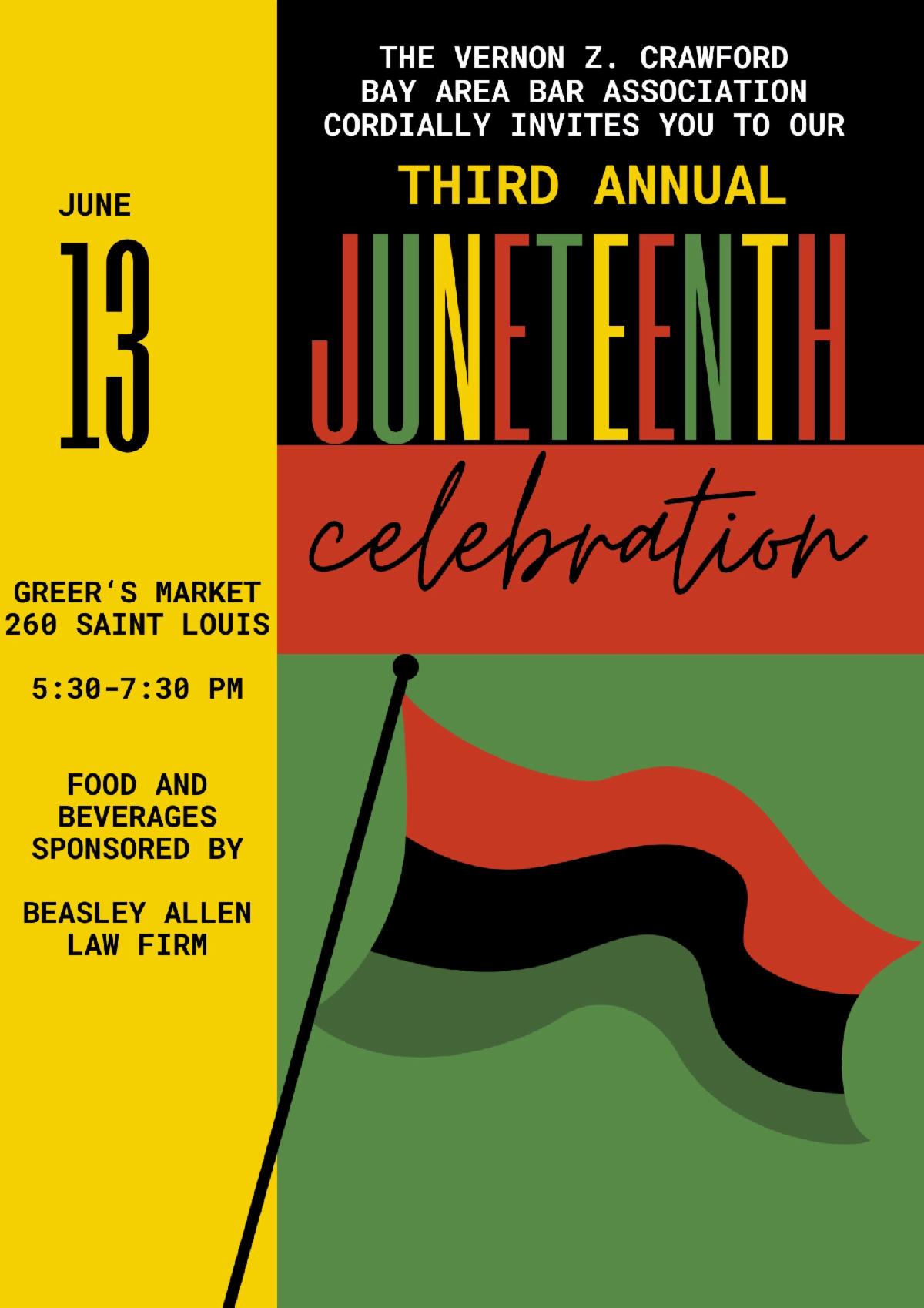 Mark your calendars: On June 12, the Women Lawyers will hold their 12th annual Trailblazer Tea honoring Judge Vicki Davis, and on June 13, the Vernon Z. Crawford Bay Area Bar Association will conduct its Juneteenth celebration.