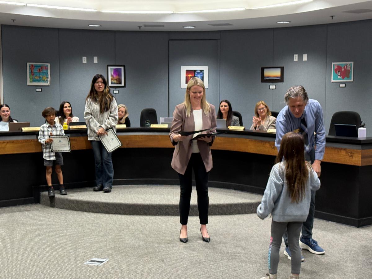| | PTA Reflections Program Winners Honored | | The Manhattan Beach PTA Council recognized the 2024-25 Reflections Art Program winners at this week’s Board meeting. Students from across the District submitted creative works inspired by this year’s theme, “Accepting Imperfection.” The program featured entries in six categories: Visual Arts, Literature, Music Composition, Film, Dance, and Photography. Reflections offers students a meaningful opportunity to express themselves while receiving positive recognition for their artistic and creative talents. We appreciate our PTAs for supporting this program annually. | | Congratulations to the following students: | | |