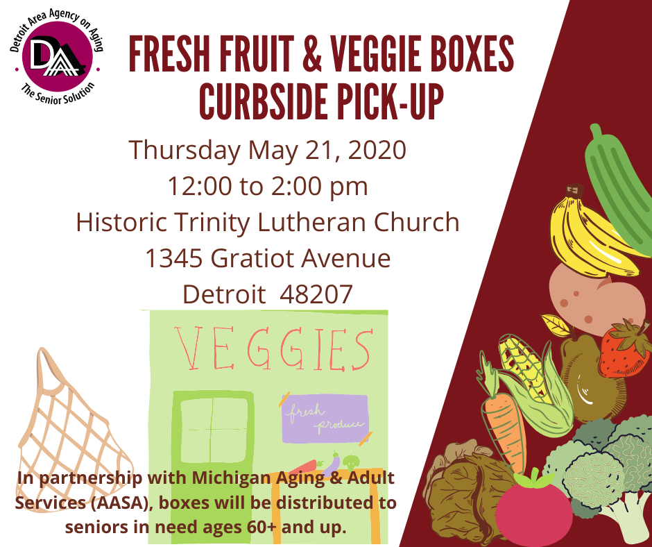 in partnership with the Michigan Department of Health & Human Services, Aging and Adult Services Administration, Eastern Market and LaGrasso Bros., a family owned and operated produce market, DAAA will distribute fresh fruit and vegetables boxes curbside to seniors in need.