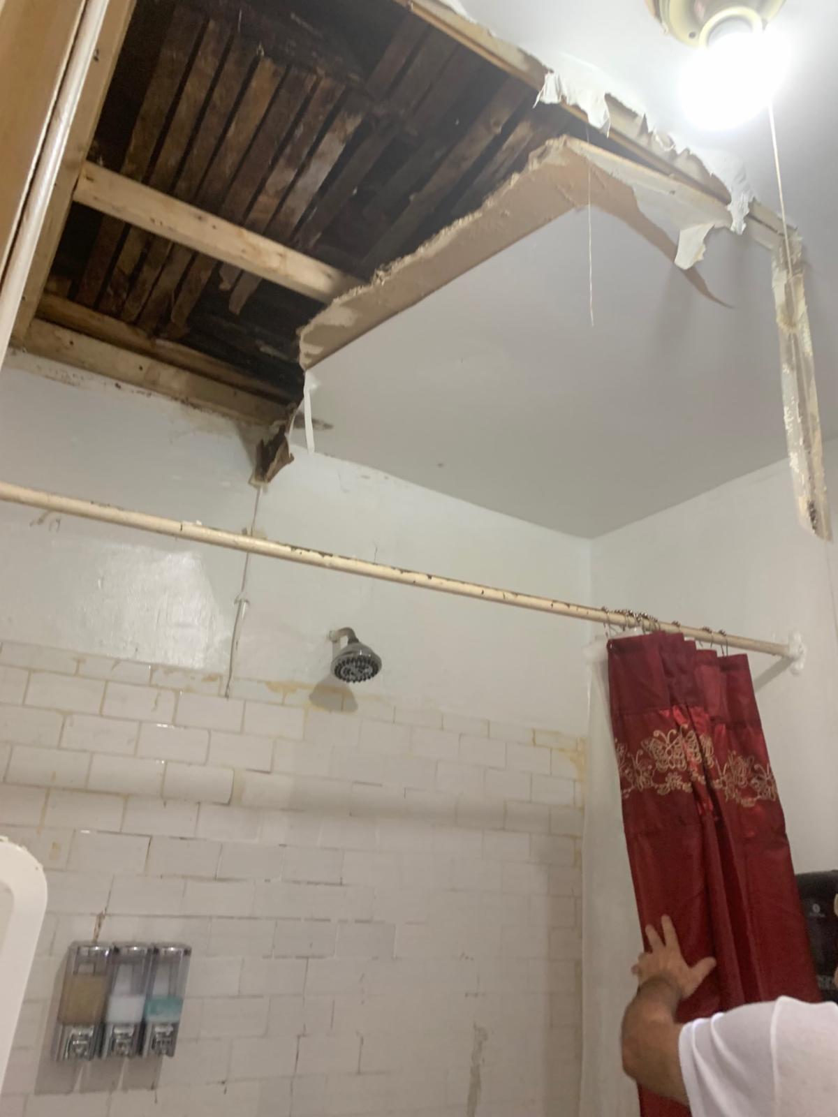 Washington Heights, NY-- HAPPENING NOW, Friday, August 23, Council Member Ydanis Rodriguez, staff members from the office of Assemblywoman Carmen De la Rosa, tenants, and community residents are onsite at 71 Vermilyea Ave. meeting with tenants regarding conditions in their apartments after a Two-Alarm fire caused major destruction in many of the units they occupy. Among the many hazardous conditions in the building, tenants have woken up to crumbling ceilings and floors.
