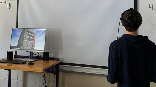 Virtual Reality walkthroughs of students' architectural designs are now possible at MGHS thanks to the forward thinking of Lora Cowell in the IMC. She recently brought an Oculus Rift S and a computer with the capabilities to process graphics generated from CAD models into the library. Students design many of their projects in Autodesk Revit, the industry standard CAD program in commercial design. When students design structures in the software, they must specify building materials, views, site locations, along with heights and widths. This can be a daunting task and easy mistakes are common when learning the software. Students can create walkthroughs of their models using an add-in software, Enscape, which allows them to immerse themselves in the design in a revolutionary way to get a better feel for their structures, find errors, or modify design flows. The VR walkthroughs also help students gain a deeper understanding of Revit software and why the program functions the way it does, which will help them in their pursuit of attaining industry recognized certification.