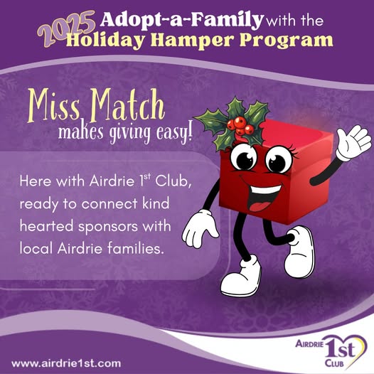November 21 | Hamper Donation Centre Grand Opening | Airdrie 1st Club | Old Airdrie Public Library, 304 Main Street SE, Airdrie, AB | 5:00 PM