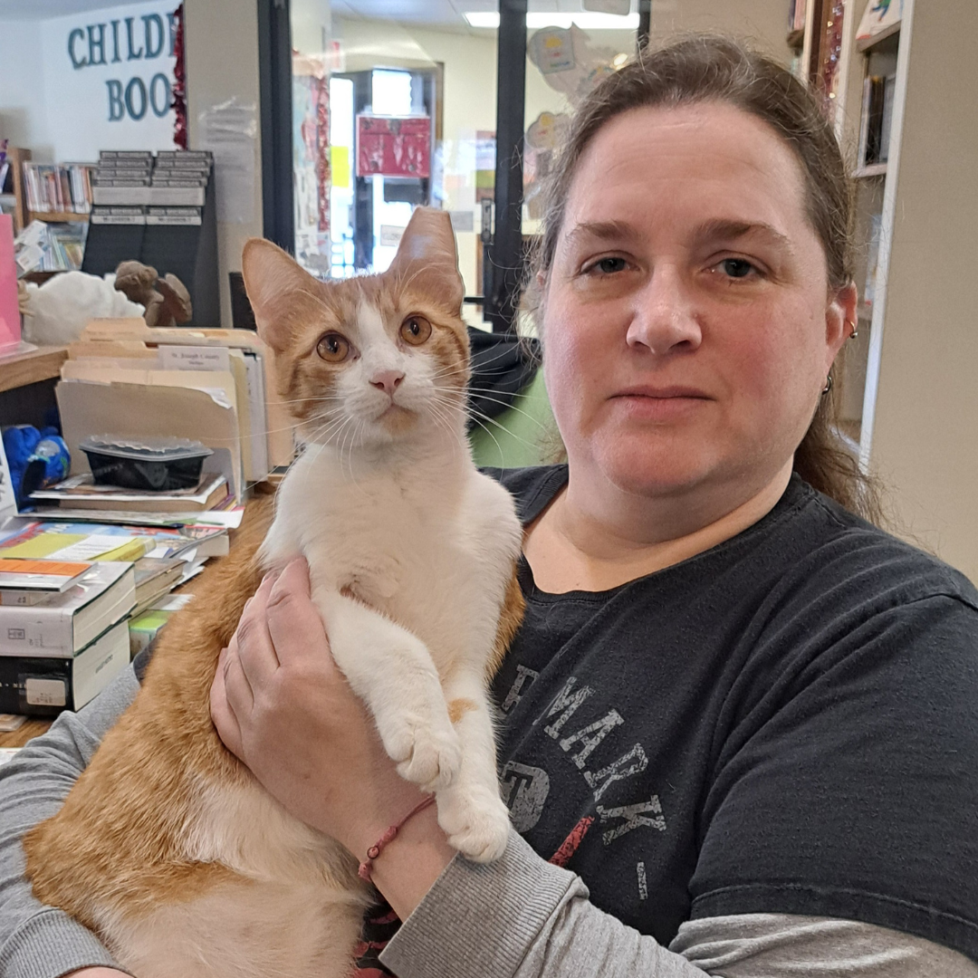 After nearly nine years as the Burr Oak Township Library’s clerk, Renee Tillmon stepped into the role of Director on January 1, 2025. (The furry feline is Sully, the rescued library cat who started daily visits to the library in May of 2024.) Wishing Renee and “Sully” all the best! | |
