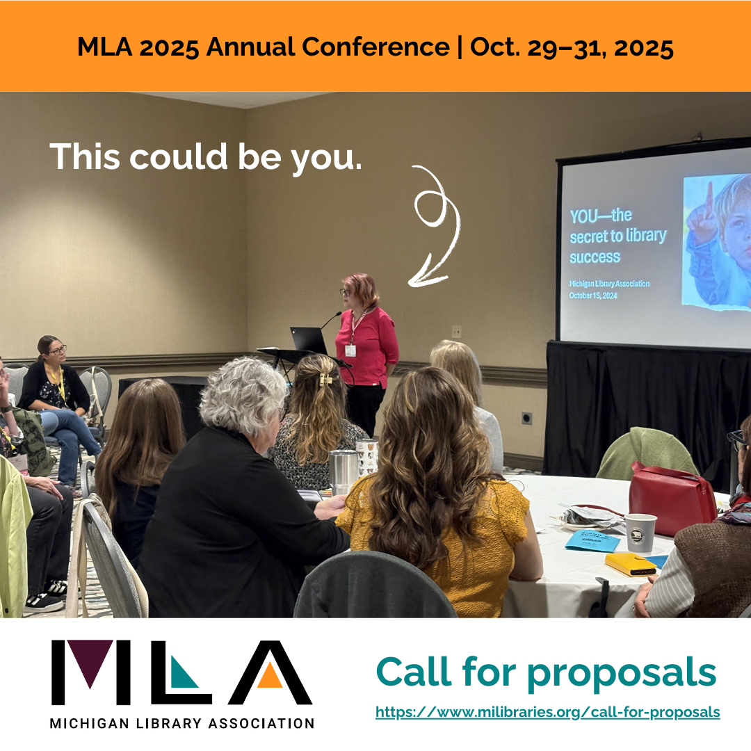The Michigan Library Association is accepting proposals for breakout sessions at the MLA 2025 Annual Conference, taking place October 29–31, 2025, at the Lansing Center in downtown Lansing.