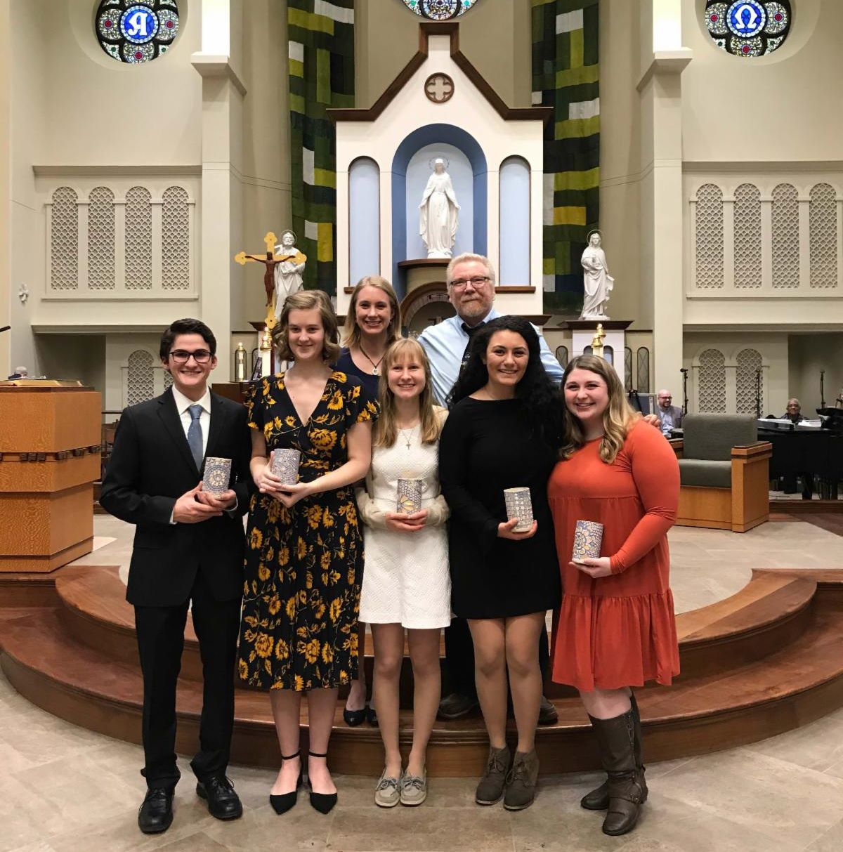 During a mass on Saturday, November 23, members of the Marianist Family welcomed the Morning Star Community and witnessed their commitment as Lay Marianists. These five students met weekly over the course of their semester at the University of Dayton to learn more about the founders, Mary, and the Marianist approach to prayer, social justice, and global mission. With help from several Marianist lay and vowed religious presenters, the students reflected on their own call as Lay Marianists and discerned what living the charism in daily life might look like moving forward individually and as a community. They chose their name, Morning Star, to represent Mary's guidance and the hope of a new day. They felt the name embodied Mary's strength, courage, and unwavering spirit, while simultaneously maintaining her kindness, compassion, and loving nature. Please offer a prayer that they may continue to grow and be inspired along their journey to strengthen their commitment each day.