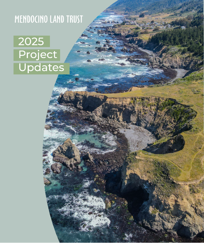 “This year, thousands of Mendocino County residents and visitors enjoyed MLT’s 20 public access sites and 20 miles of trails spanning our 100-mile coast. Our work ranged from creating new public access to acquiring land that we will return to Tribes. We designed new California Coastal Trail segments and began the early planning of a section of the Great Redwood Trail north of Willits. MLT staff and partners made significant progress on important habitat protection and restoration programs for endangered coho salmon and Behren’s Silverspot butterflies. We also continued to work on protecting thousands of acres of additional redwood and fir forests, oak woodlands, working forests, farms, and ranches on the coast and inland.”