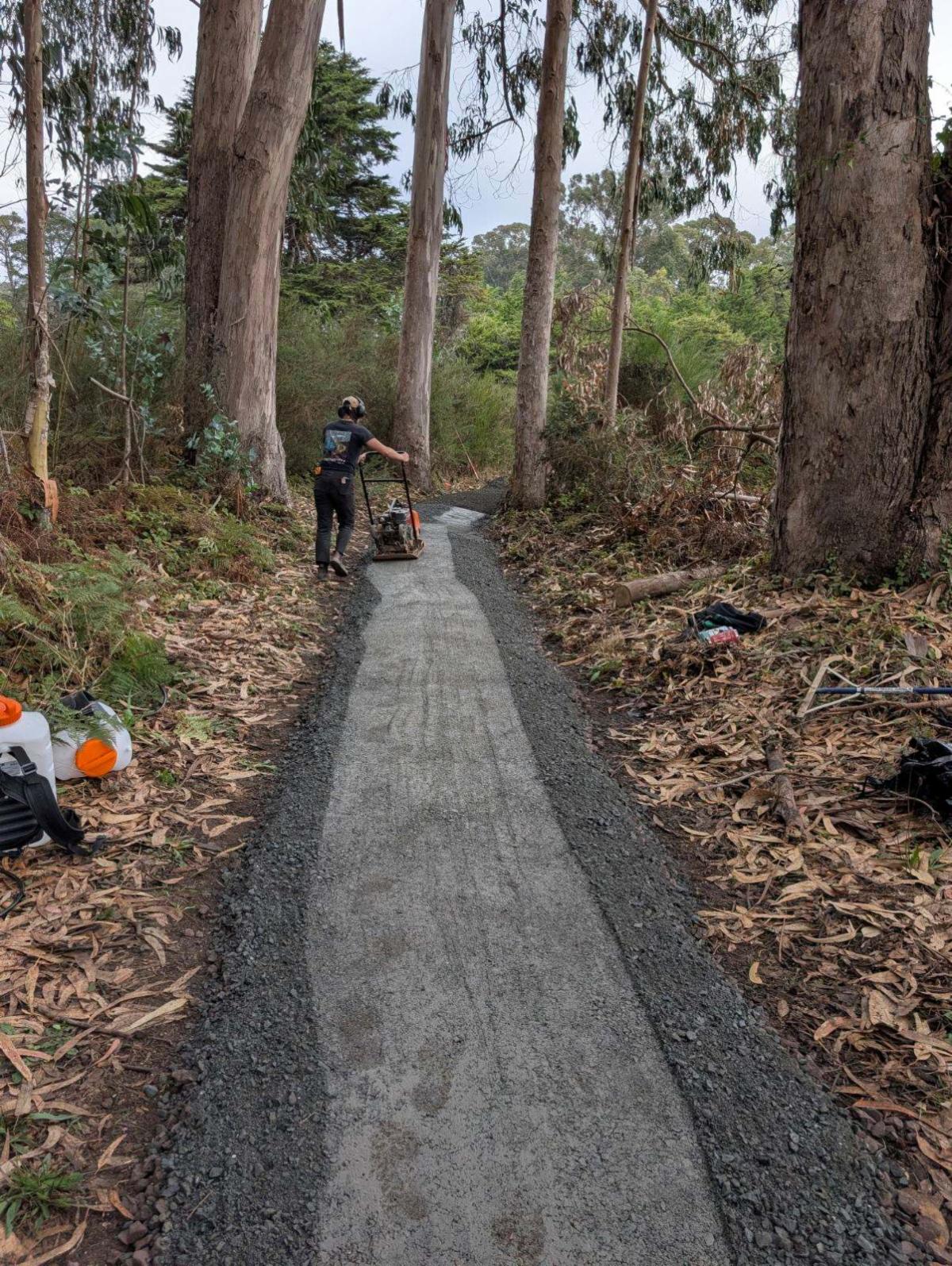 The Fort Bragg Rotary Club did double duty on this one, not only providing funding support but also answering the call for volunteers on our October 11 Belinda Point workday, helping us remove approximately 300 feet of old boardwalk. The Rotarians were joined by enthusiastic neighbors, members of the Fort Bragg High School Interact Club, and MLT staff. We are currently laying down a new gravel path, which consists of a 6-inch base layer of coarse gravel topped with a compacted crushed stone layer to provide a smooth surface. The gravel is graded to slope downward on each side to help drainage. Weather permitting, we hope to have the new trail section completed this month. Please note that while the trail remains open during construction, please exercise caution if you head out. Keep an eye out for debris, and be aware that some sections may be slippery during wet weather.