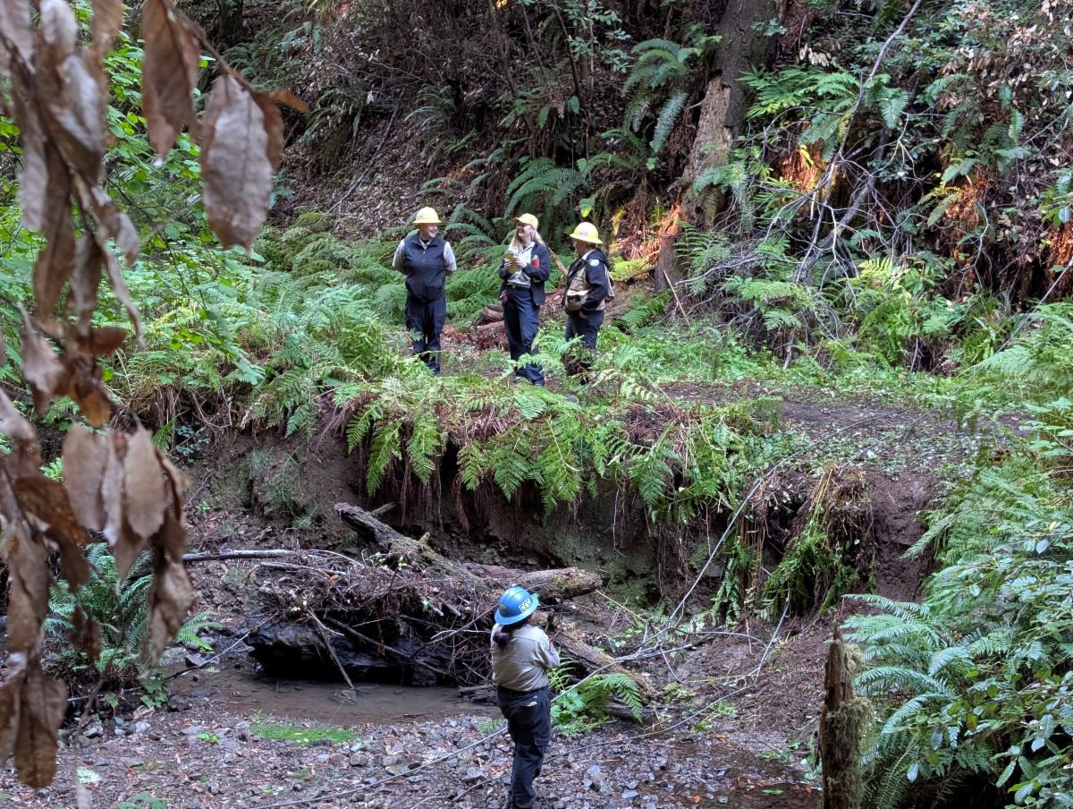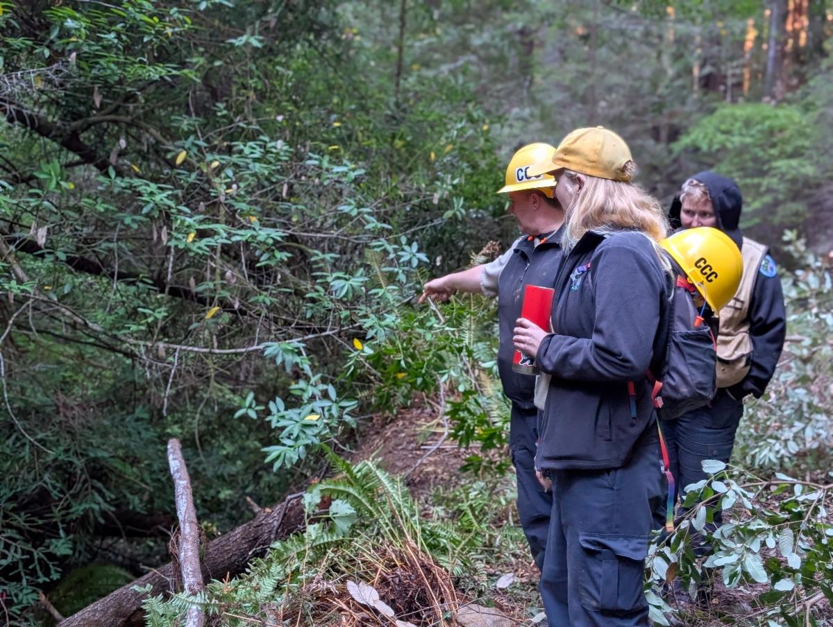 California Conservation Crew viewing the Brandon Gulch Salmon Restoration Project in Jackson Demonstration Forest, October 6, 2025. Photo Credit: Nicolet Houtz | |