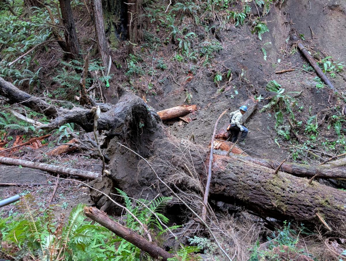 Brandon Gulch is a small tributary to the South Fork Noyo River, located in JDSF. Thirty-five new log structures were installed, using over 100 large wood pieces that were placed and secured over a 3,885-foot stretch of the stream. The goal of this project is to improve the quality and quantity of spawning and rearing habitat for coho and steelhead in Brandon Gulch by increasing the complexity, frequency, and depth of pools that provide shelter and refugia. The large wood elements will sort substrate, capture spawning gravels, and improve overall stream function, while also supporting the broader forest ecosystems.