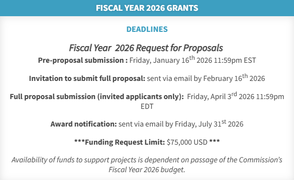 Commission Announces Fiscal Year 2026 Grant Program!