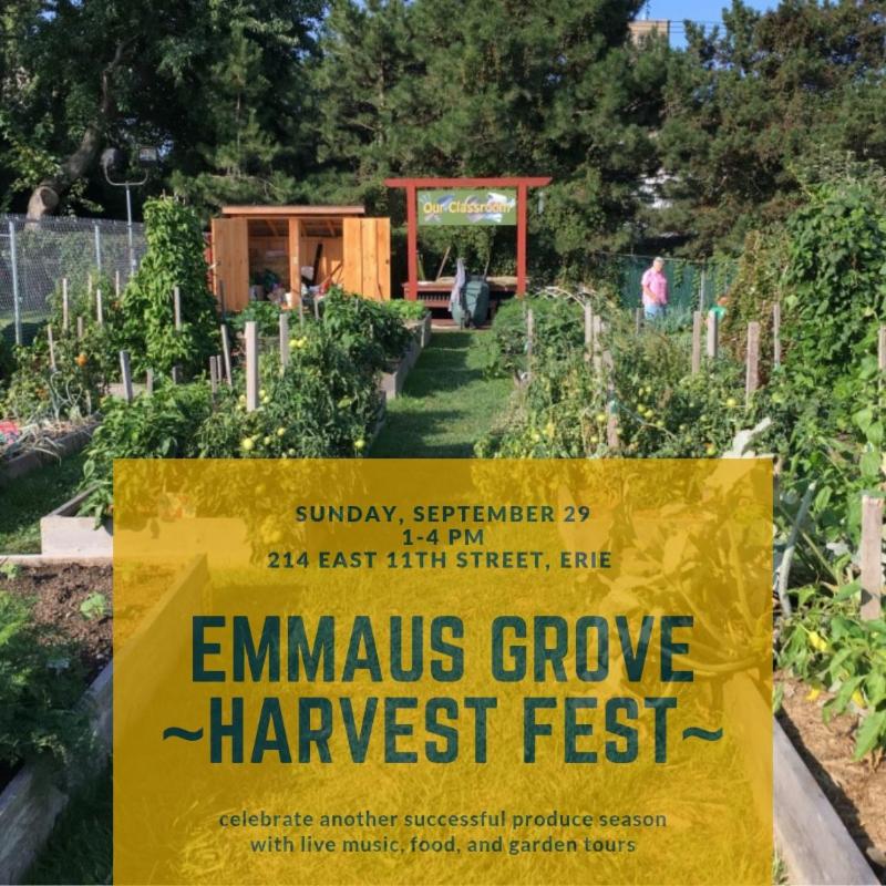 Emmaus' Harvest Fest celebrates another successful season of produce at Emmaus Grove: The Erie Urban Farm School. Join us for live music, food, and tours of the garden.