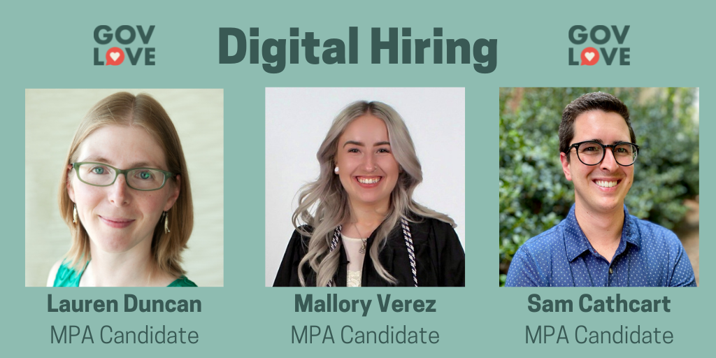 Three guests (and current MPA students!) joined the podcast to talk about their research into effective ways that local governments have hired staff in a remote or virtual environment. Listen.