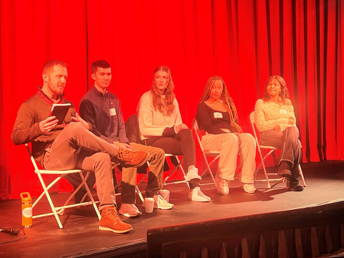 Patrick Lutz, Director of College Counseling, spoke with Max Fung '21, Genevieve Morrow '21, Gabriella Range '24, and Grace Montas '22 about college life with current MPH seniors and juniors in the Coville Theater. | |
