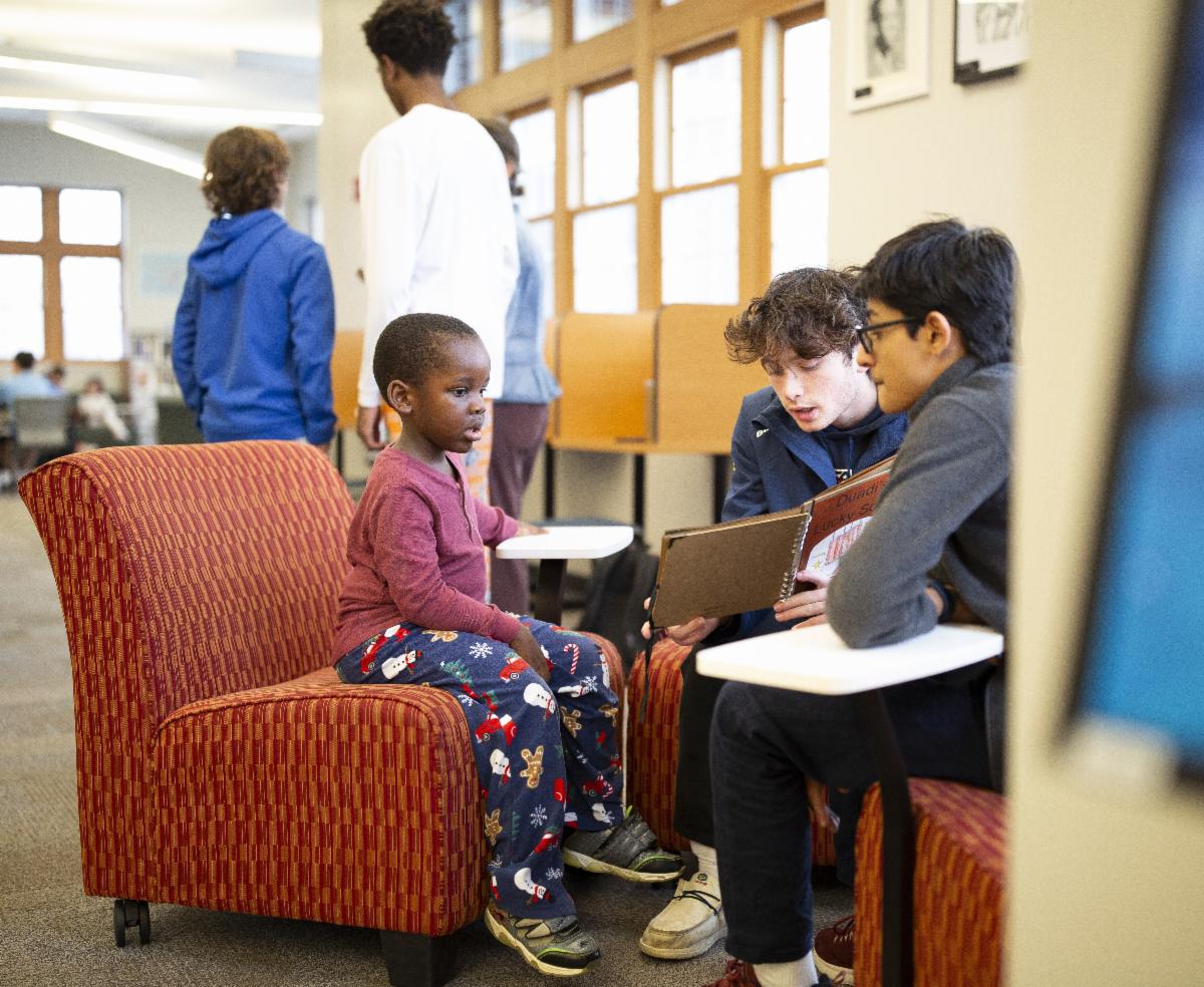 Eighth grade students in Ms. Doyle's English class have worked hard creating original books about a kindergarten buddy from Ms. Gannon's class. Students met with their buddies on several occasions to get to know them better and would be able to write a short story. After writing, revising, and creating illustrations, the 8th-grade students shared the stories with their buddy. The kindergarteners enjoyed listening to the finished story about themselves.
