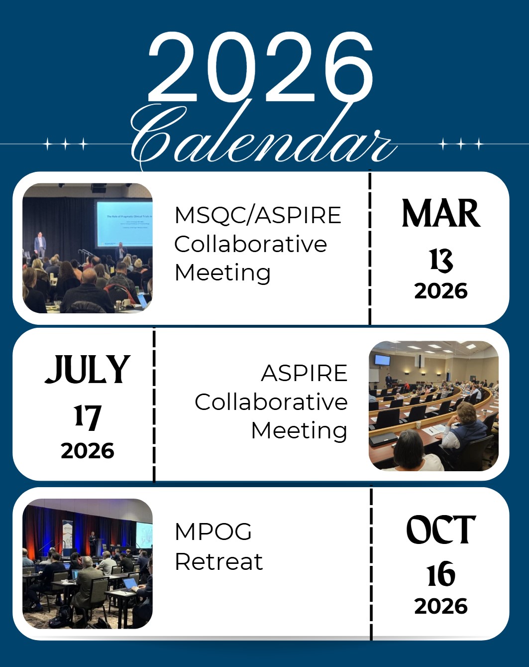 | | Douglas Colquhoun Associate Research Director, MPOG | | Click the button below for more information and to register for the MSQC/ASPIRE Collaborative meeting on March 13, 2026. | | The MPOG 2025 Retreat, held on October 10, 2025 during the ASA Annual Meeting in San Antonio, highlighted the collaborative spirit and innovation of the MPOG community. Sessions focused on perioperative quality, including PONV management, ambulatory anesthesiology, opioid stewardship, sedation practices, and transfusion and fluid management. Highlights included “Best of MPOG” presentations, Emerging Scholar research, and updates on MPOG’s data infrastructure, quality initiatives, and trials such as VEGA-2 and IntraOp Ox, underscoring MPOG’s leadership in data-driven perioperative quality improvement and research. For post meeting notes, see our Archived Events page. | |
