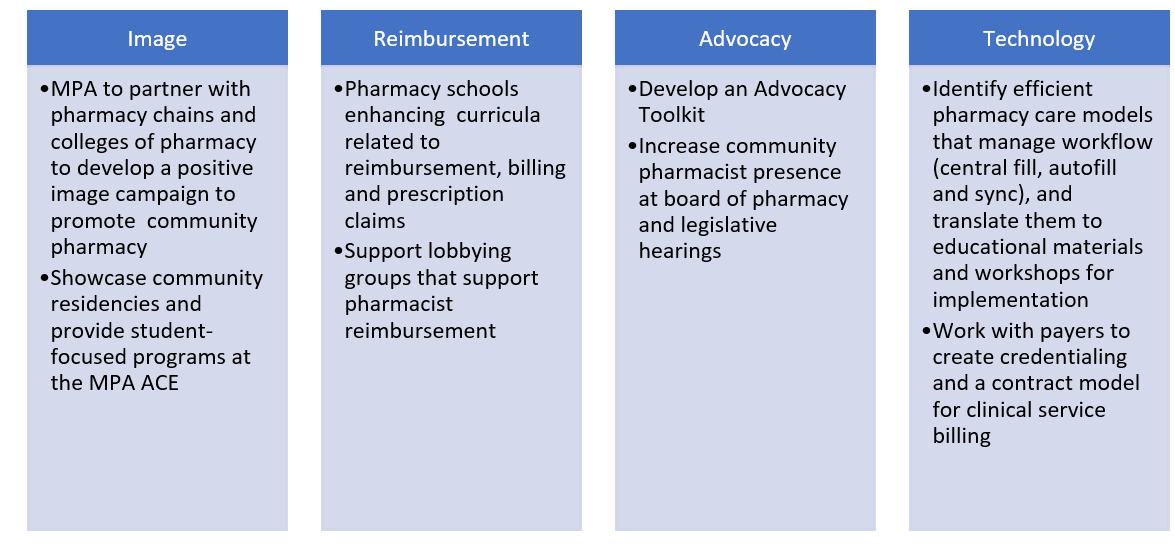 - To examine the current state of pharmacy education to identify gaps that should be addressed to better position graduates to practice in future models of community practice.