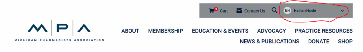 Step 1: Go to the MPA homepage, login and click on your name in the upper banner
