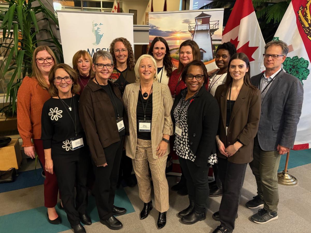 Secure Island Data Repository launches in Prince Edward Island | Back row (left to right): Katelynn Frizzell, Lindsay Stewart, Robyn Kydd, Kate Kelly, Mary-Ann Standing, Alex Ouedraogo, Ted McDonald. Front row (left to right): Suzanne Kennedy, Donna Curtis Maillet, Marina Hamilton, Marva Sweeney-Nixon, Kaleigh Duffy. | | |