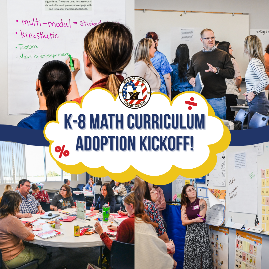 Manteca Unified math educators and administrators recently launched the exciting journey of selecting a new K-8 math curriculum. With California's most updated Math Framework now reflecting modern best practices, MUSD is reviewing instructional materials to ensure our students continue to succeed in the subject.
