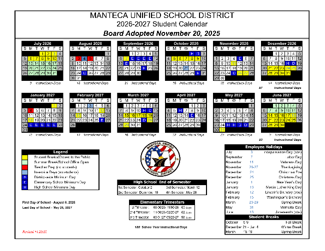 Manteca Unified School District and Manteca Educators' Association collaborated on the newly adopted student calendar for the 2026-27 school year.