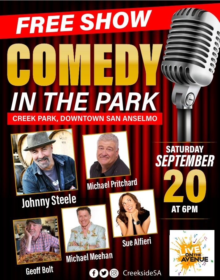| | YOU'RE INVITED: Special Meeting Featuring YOU | YOU Are ALWAYS Invited to come to Creekside, located here in the Heart of Marin. We welcome you for lunch, our 7 day-a-week 365 days-a-year Happy Hour at 4PM every day, for dinner, meet friends, make new friends, hole-up and hide in the redwood trees, enjoy takeout, outdoor parks and parklets, plus so many great local shops too. The whole world gets going so fast and chaotic; people watch the shitty news and get all wound up, the spouse does this or that, he said she said, Salesforce just laid off everyone, you couldn't get your tee time, the dog crapped on the rug, the president said...whatever today. Folks, it's time to Bring The Joy, put things into perspective, relax. We offer that San Anselmo is THE place to do this; Quaint shops, passionate local merchants, cute parks, family-friendly events, great restaurants and hospitality, and a loving community. Give yourself a time out. Won't you join us? All are welcome. Visit San Anselmo. It's a magical place. | | | | SEPTEMBER 20th: Comedy Night in San Anselmo | A NIGHT OF LAUGHS! We are stoked to co-produce the first-ever Comedy Night in Creek Park. 6PM showtime with Michael Pritchard, Geoff Bolt, Sue Alfieri, Michael Meehan, and Johnny Steele. Low-back chairs, blankets, coolers welcome in the park. Saturday, September 20th during Live On The Avenue. COME EALRY: It's also our annual San Anselmo Community Parade day at 4PM. CLICK HERE to Sign up to join the parade and march alongside the Star Wars 501st Garrison of costumed actors and characters > CLICK FOR MORE INFO | | | | HERZHAFT: Ein Taste Auf Das Oktoberfest | |