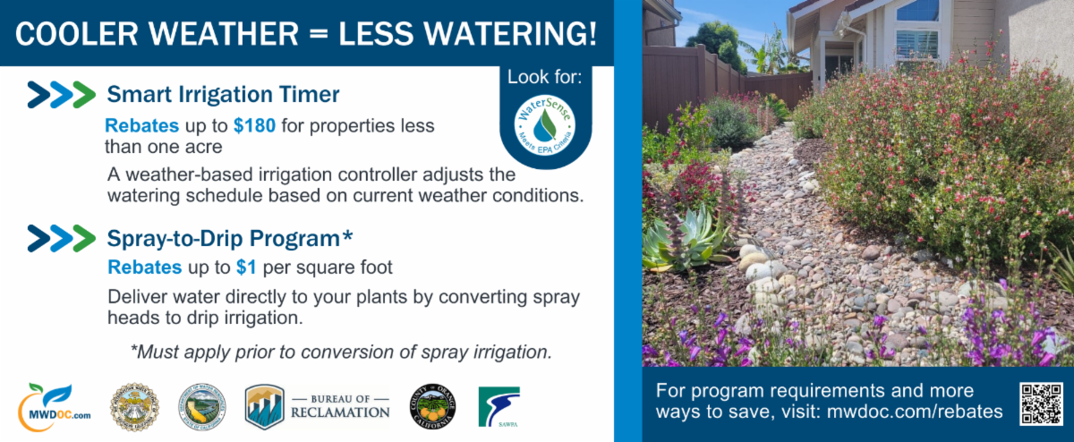Make the season bright and water smart! The holidays bring joy, gatherings, and extra water use at home. With a few simple changes, you can enjoy the season while keeping your water use in check. MWDOC offers easy tips and rebates to help you save water, time, and money from kitchen prep to leak checks and winter landscape adjustments.