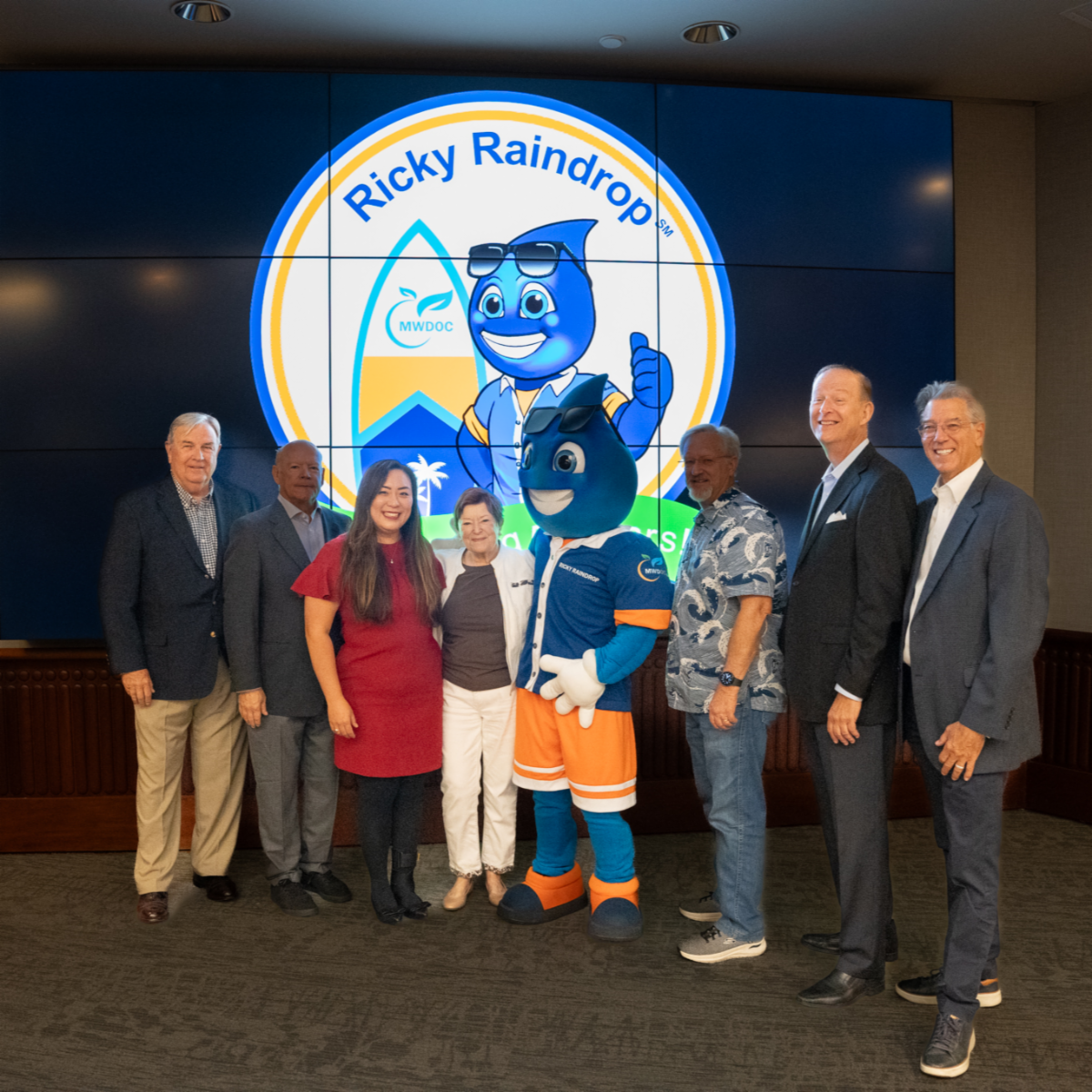 MWDOC celebrated the 50th anniversary of its beloved mascot, Ricky the Rambunctious RaindropSM, with a special ceremony at its headquarters! The celebration showcased the introduction of Ricky's new appearance, personal accounts of his impact on water education and the community, and the presentation of legislative certificates commemorating this significant milestone.
