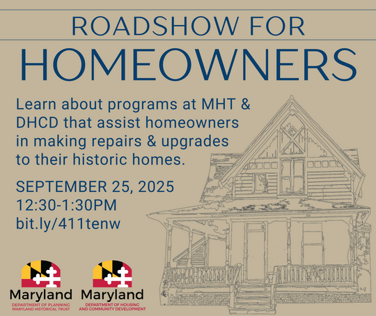 If you own a historic home in Maryland and want to learn how to care for it, consider joining Maryland Historic Trust's free Virtual Roadshow for Homeowners: