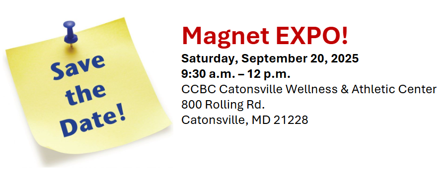 BCPS will be hosting a Magnet Expo on September 20, 2025 from 9:30 a.m. to 12:00 p.m. at CCBC Catonsville.
