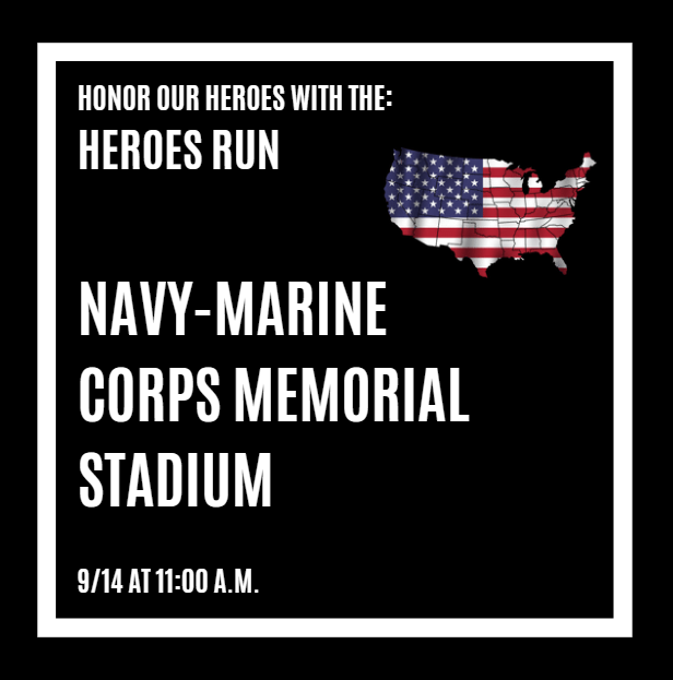 The Heroes Run will be held at Navy-Marine Corps Memorial Stadium to honor those who lost their lives on September 11, 2025 and those who stepped up to serve in the years that followed.