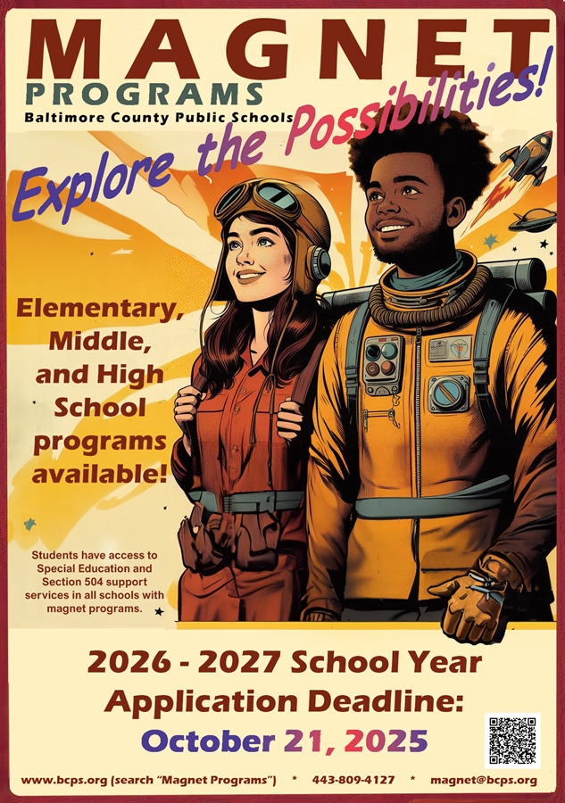 Magnet Applications open on September 8, 2025 in BCPS. This can be a unique opportunity for students to explore pathways of interest that can greatly expand their knowledge base in a specific field of study while providing an excellent note on a resume or college application.