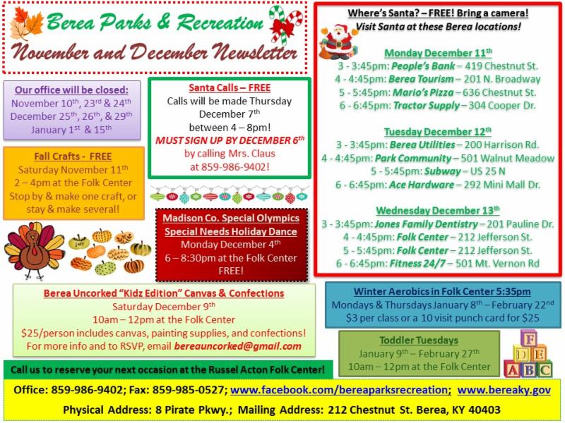 As we transition out of fall, the colorful leaves around town are being replaced with lights and wonderful holiday decorations. Come and visit Berea to start your gift shopping and get in the holiday spirit with our exciting and festive events.