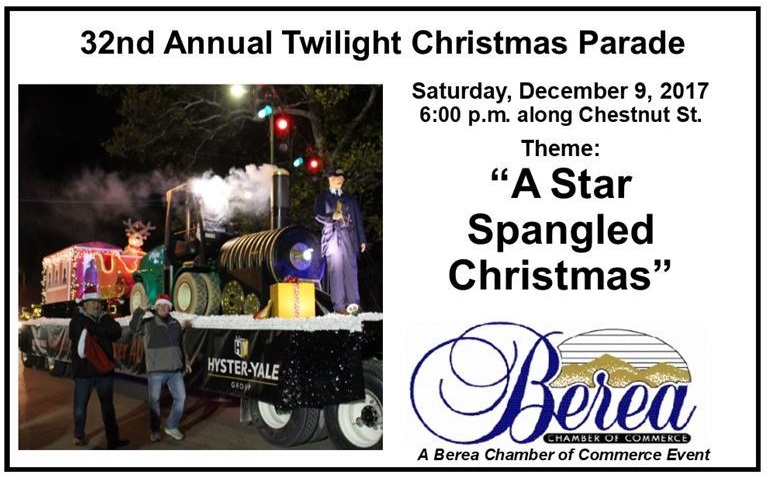 Our 32nd annual Twilight Christmas Parade will be held on December 9th, 2017 at 6pm! The theme for this years parade is "A Star Spangled Christmas".