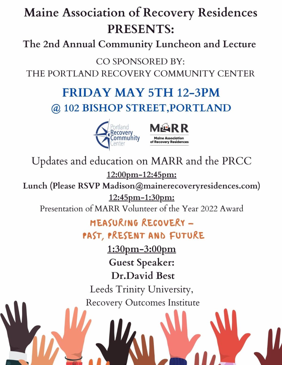 This newsletter allows us to connect with you, our Maine recovery community. Whether you're a person in recovery, family member, or ally, you are part of the solution to addiction. Published on a regular basis and sent via email, this newsletter provides updates and gives you an opportunity to help support recovery and spread the message of hope throughout the state of Maine. To learn more about PRCC, whose programs are funded in part by the Maine Department of Health & Human Services, visit our website. Please send any feedback or information you'd like us to include to newsletter@portlandrecovery.org.