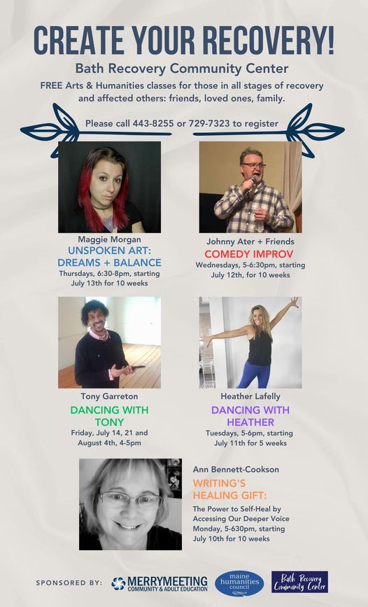 Bath Recovery Community Center is offering FREE arts and humanities classes for people in all stages of recovery and affected others. The goal of the project is to reduce stigma, provide a safe healing environment, and educate the public.
