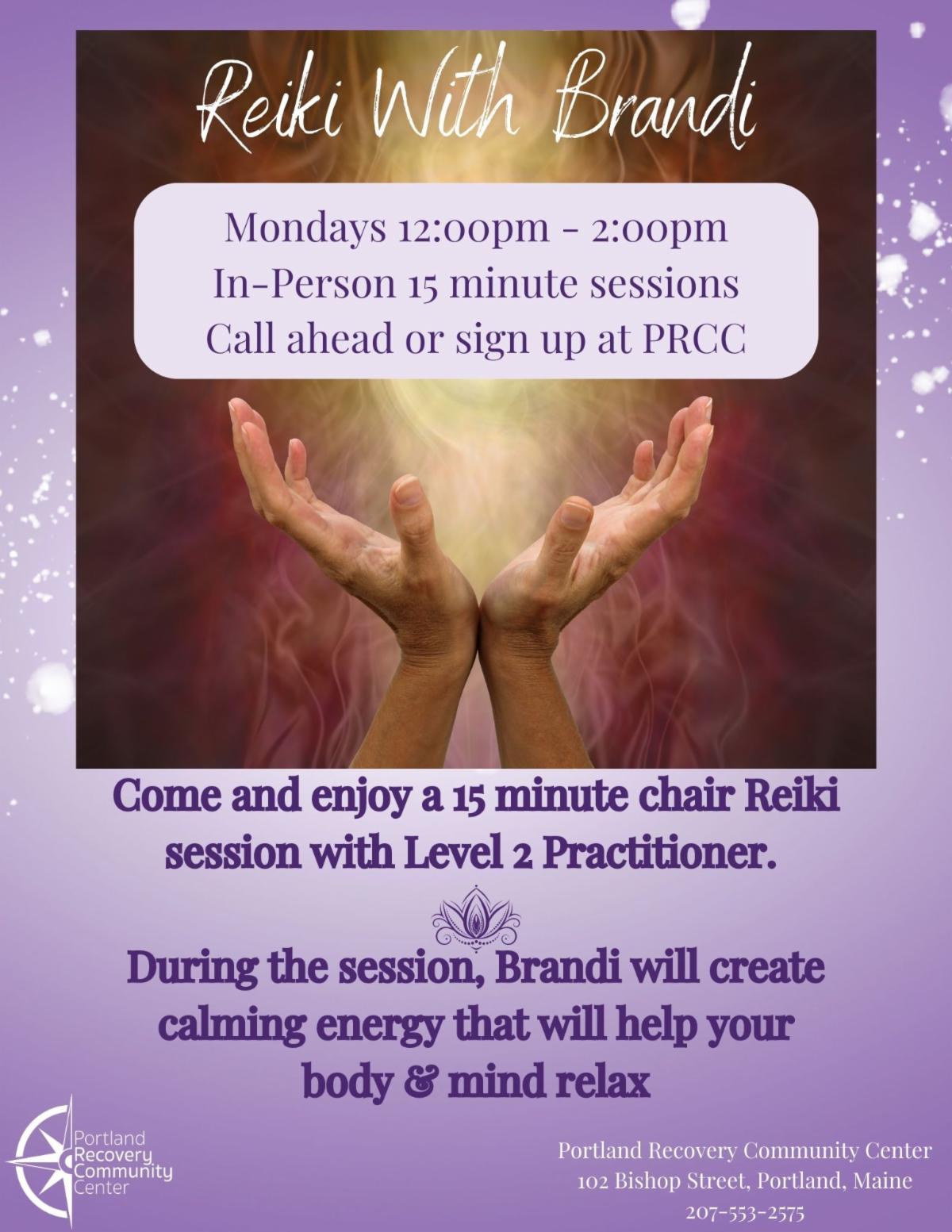 Reiki with Brandi is offered from noon to 2 p.m. on Mondays.